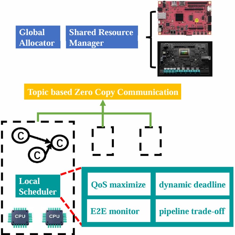 End-to-End Real-Time Compensation Mechanism: Within scheduling units, we have designed and implemented an end-to-end real-time compensation mechanism. This mechanism comprehensively considers algorithm quality, communication quality, and actual requirements to achieve end-to-end real-time guarantees by dynamically adjusting resource allocation and application objectives.